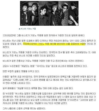 비스트가 기모노 착용 거부나 독도는 한국땅 발언으로 인해서