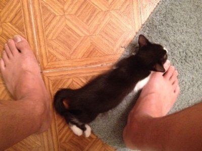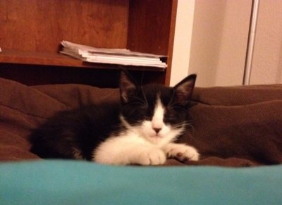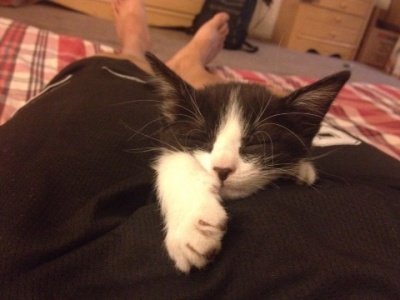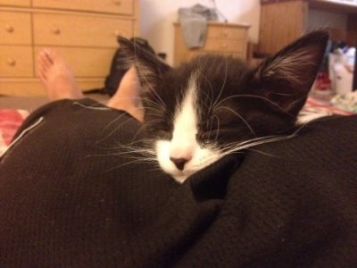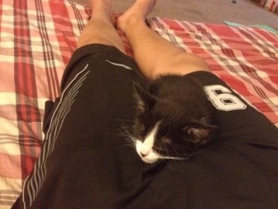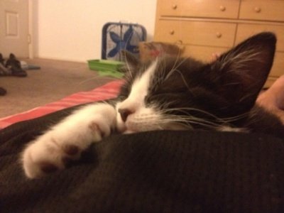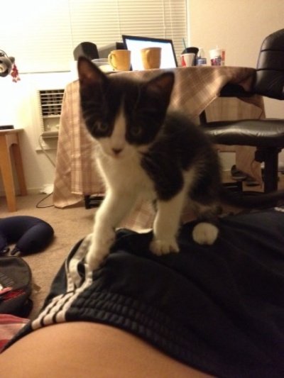 당황한 남친은 얼른 냥이를 담요위로 옮김