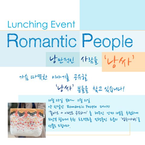 1.(Romantic People페이지를 좋아요) + 2. (런칭이벤트 공유하기)를해주신