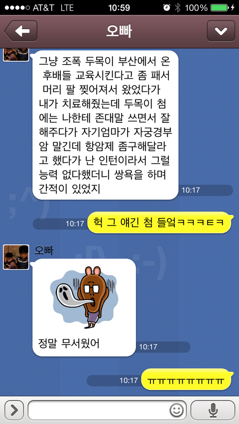 이제 소재도 댓흉 다 떨어져가고..오라버니께 SOS를 쳤더니, 왜 그러냐고 묻길래..오빠랑 언니에게 들은 이야기를 판에 적었는데한 15만명이 읽었다니 갑자기 오라버니 씐나셔서저한테 폭풍카톡을 보내주었어요~ 오라버니 싸랑해요~