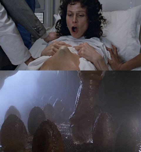 인간을 숙주로 이용해서 외계생물이 나온다! 하면
