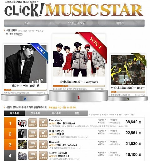 1. 클릭뮤직스타(서울 가요대상 시상식 반영 투표)