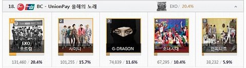 (남자 그룹상, 베스트 댄스 퍼포먼스 남자 그룹, 올해의 가수, BC - UnionPay 올해의 노래)