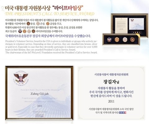 살~짝 장길자 회장님의 라이프타임상을 봅시다!