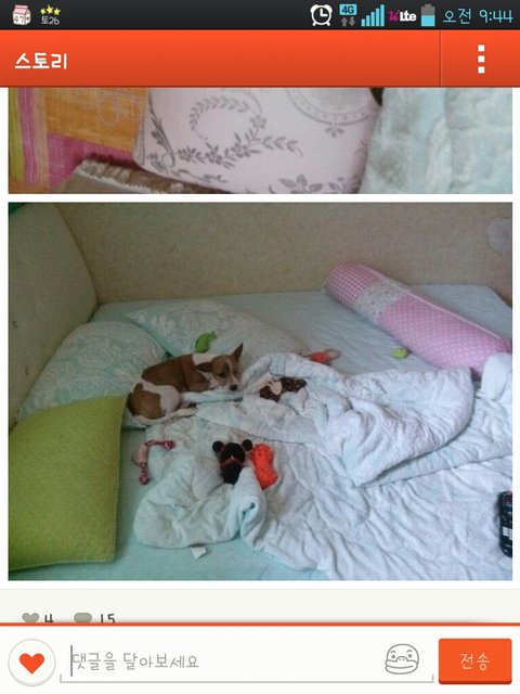 아빠 자켓도 물어다 방에 던져놓고..베게도 맘에드는위치로 이동.. 수건은 물고논듯 펼쳐져잇고..ㅎㅎ