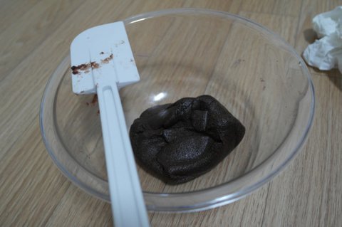 머랭 올린거는 사진을 못찍었네요. 사진찍는 사이 머랭 거품이 죽을까봐...ㄷㄷ 저건 슈가파우더 + 아몬드가루 + 코코아분말 + 흰자 로 반죽한 모습입니다.