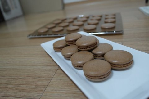 오오오~ ! 잘된거같아요! 크기가 좀 조그만한거같긴 한데 완전 귀요미 마카롱입니다. ㅋㅋ