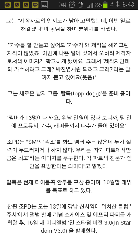 지금 탑독인가뭐시기 프로듀싱한다는데
