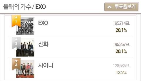 빨리 투표하자 ㅠㅠㅠㅠㅠ!!!! 신화랑은 투표율이 비슷해서 같이 첨부했어요 ! 엑소사랑하자 !!