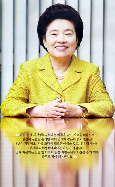 그래서일까. 복지회 회원들은 그를 '회장님'보다 '어머니'라고 부르기를 더 좋아한다고 한다.그는 최근 '새생명복지회'에서 '(사)국제위러브유운동본부( Internationl We Love You Foundation. 약칭 IWF)'로 복지회 이름을 바꾸고 이웃사랑에 가속도를 내고 있다. 지난 추석에는 구내에 체류하고 있는 외국인 노동자 가족을 안산문화원에 초청해 맛있는 음식을 대접하고 한국의 전통놀이를 즐기는 시간을가졌다. 함께 어울려 좋은 추억을 만드는 동안 그들은 무엇에도 비할 수 없는 위로를 느꼈을 것이다.
