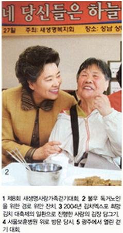 가난하고 어려운 이웃들의 30년 지기이자 가족 '새생명복지회'복지회의 개명은 회원들 개개인에게도 신선한 자극이 되고 있는 듯하다. 지난 10월에는 추석 연휴까지 반납하고 태풍 나리 내습으로 폐허가 되다시피 한 제주도 지역을 찾아 복구 작업을 하는 자원봉사자들을 도와 수재민들에게 식사와 간식을 대접했다. 또 주택 침수로 집이 무너져 발을 구르고 있는 독거노인들이 있다는 소식에 팔을 걷어붙이고 나서 집수리와 도배를 해드려 다섯 명의 노인들에게 큰 힘이 되어 주었다고 한다. 회원들의 이심전심은 국경도 훌쩍 뛰어넘었다. 같은 10월 페루 리마지부 회원들은 유례 없는 강진으로 폐허가 된 페루 이카 주(州)의 한 도시를 찾아가 이재민들에게 희망과 용기를 전하기도 했다니 말이다.