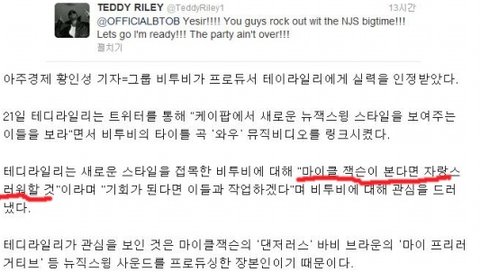 '테디라일리' 에게 극찬을 받은 아이돌은