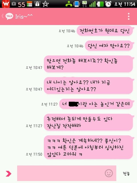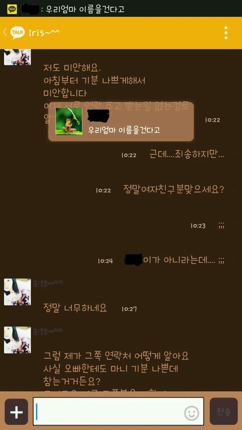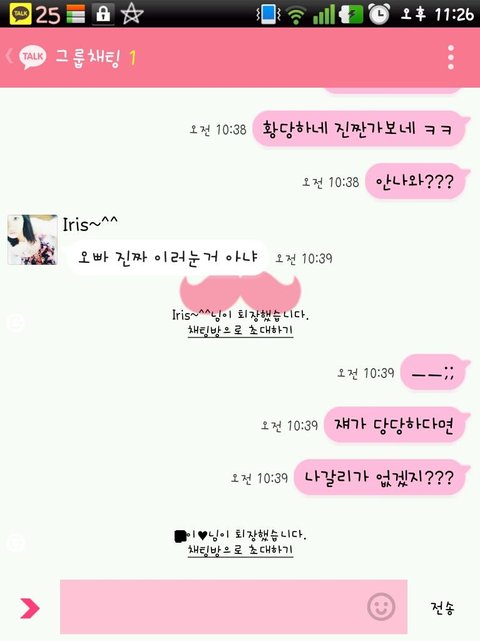 그리고 약 1주일이 지난 지금 그 Iris~^^는 흔적도 없이 사라졌네요. 여자친구에게 이거 분명 일주일 안에 카톡 아이디 사라진다. 했던 제 예상이 맞아떨어졌습니다. ![]()