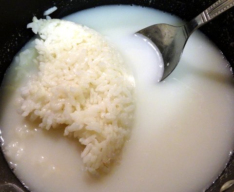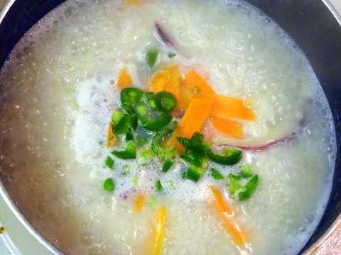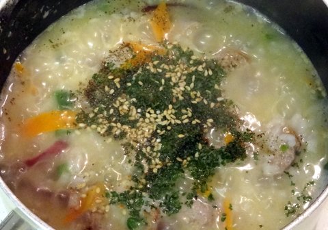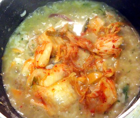 육수가 끓을 때 찬 밥 투입