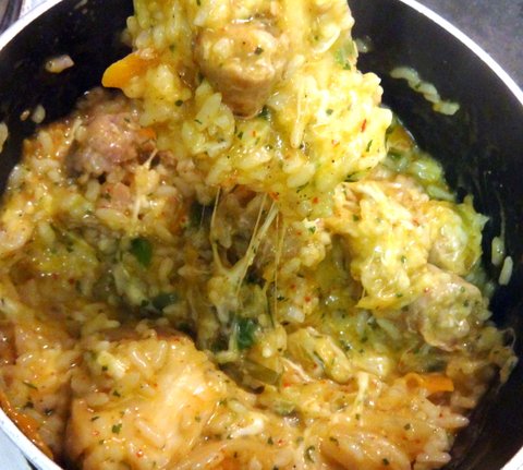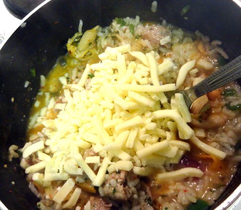 밥알들이 좀 뭉쳐야 하기에 치즈를 넣어줌