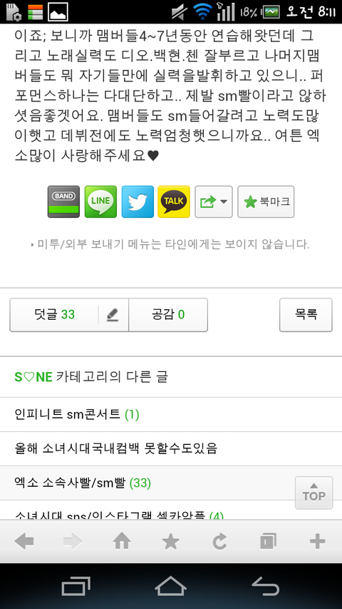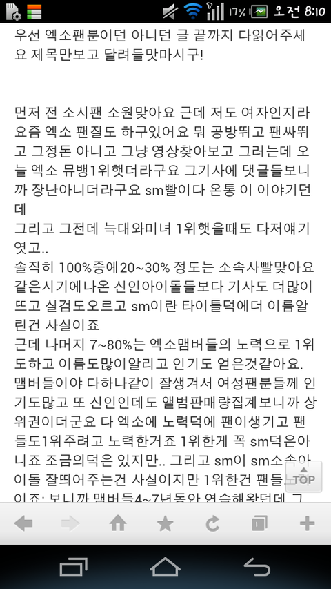 엑소 sm빨이라고 글쓴 소시팬