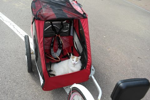 얼마 전에는 지인에게 트레일러를 빌려서 자전거 산책에 도전해 보았음. 뽈이는 바람쐬며 느긋하게 경치 감상했음.
