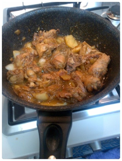양념이랑 닭에서 나온 물이 자글자글 쫄아서 불을 껐을때 바닥에 얇게 퍼질정도로 남았을때