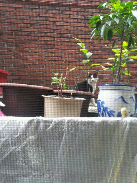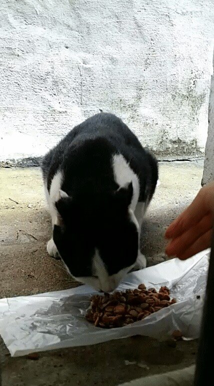 손도 낼롬낼롬 핥아줍니다만...만질수없어요..밥을 아주~가끔씩 현관에와서 먹곤하는데 제가 몰래