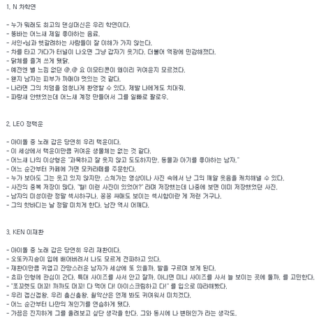 최애 멤버별로 보는 별빛 분들의 특징 간단 분석(출처 공카)