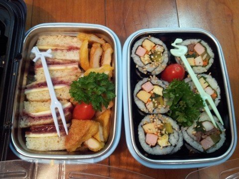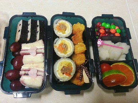 아들 도시락 ~블루베리쨈 샌드위치 팝콘치킨 꼬지 불고기치즈김밥