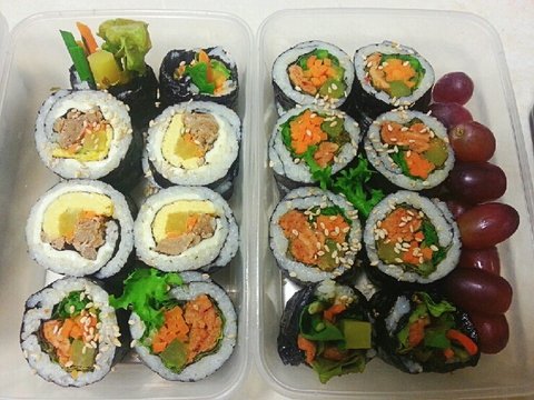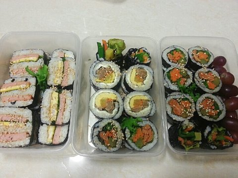 또 김 반장을 깐다음 그위에 재료를 올려서 말아요..