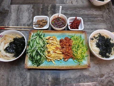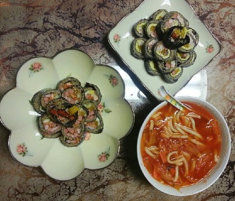 현미 파프리카김밥.투다리 짝퉁 김치우동