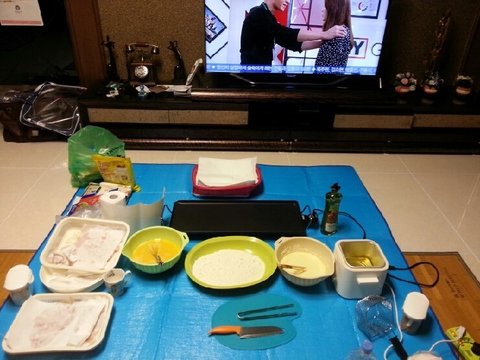 이제는 전날 저녁에 미리 재료 다 손질해놓고 새벽 4시에 일어나서 스타트~~합니다