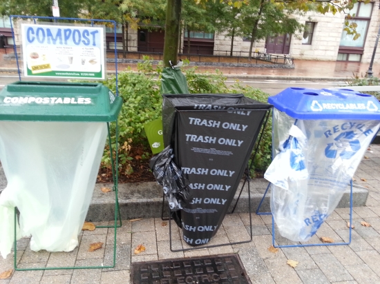 아침에 도착하자마자, 이렇게 생긴 쓰레기통들을 곳곳에 설치해야 했어요 ㅎㅎ