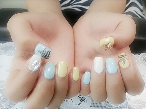 # 비비안 웨스트우드, 큐빅, 파스텔, 노랑, 파랑