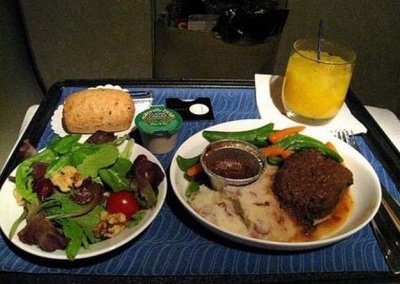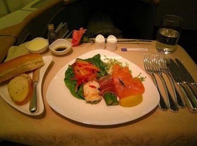 퍼스트 클래스의 다양한 기내식 메뉴들