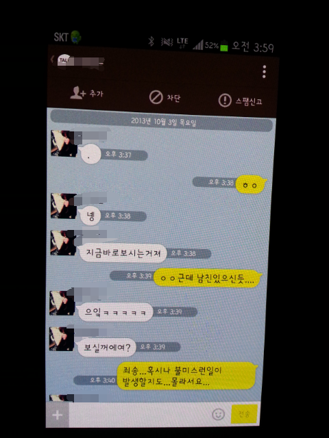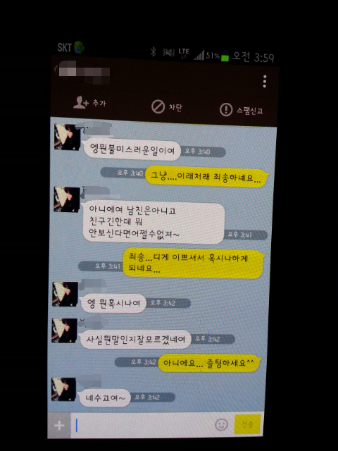 얼마전 우연히 신랑에 톡을 보게 되었습니다.