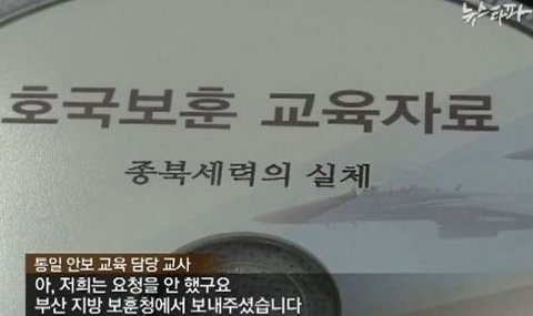 동영상과 책자를 만들어 ‘대선용’으로 활용한 정황도 포착됐다. 대선이 치러진 2012년 국정원-국방부-보훈처 등이 “반 유신과 민주화 운동, 민주인사를 종북”으로, “김대중 정부의 6.15남북공동선언을 적화통일을 꿈꾸는 북한의 주장에 동조하는 것”으로 왜곡하는 DVD 동영상과 책자를 만들어 정부부처와 시도교육청, 예비군과 민방위 훈련장에 대량 배포했던 것으로 드러났다.