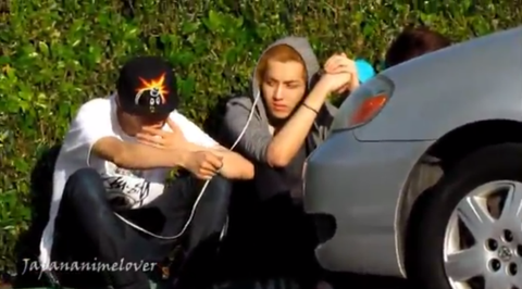 크리스가 딴 곳 쳐다보다가 춤추는 찬열이 보고