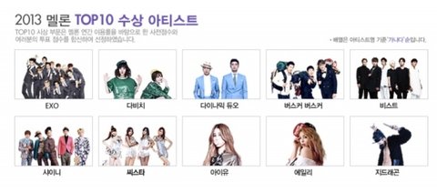 1차 온라인 투표 결과는요~ EXO, 다비치, 다이나믹듀오, 버스커버스커, 비스트, 샤이니, 씨스타, 아이유, 에일리, 지드래곤!! 엑소가 선두~ㅋㅋ