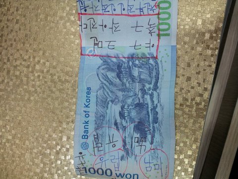 낙서된 돈 받음 기분좋으세요??