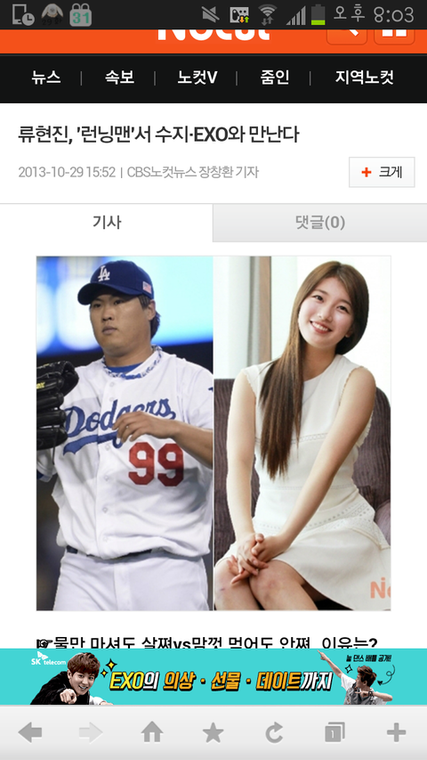 헐 엑소랑 류현진만 나오는게아니라 수지도나와????