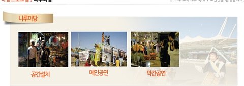 각 마당마다 볼거리, 체험거리, 먹거리 등을 선보입니다.