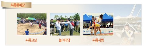 씨름마당에서는 천하장사 이태현의 씨름 강습을 받을 수 있습니다.