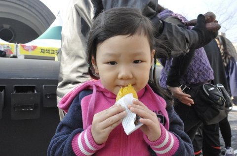 노랗게 익어가는 고구마를 무료로 맛볼 수 있도록 제공합니다.