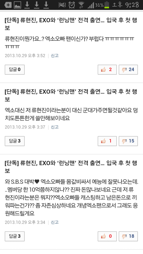 이거 네이버에 류현진이랑 같이런닝맨나온대서 신나서 기사보다가 열뻗침