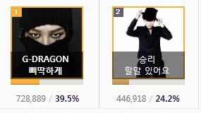 여기 보면 알겠지만 이미 차이가 나도 너무 많이남..ㄸㄹ승리에게 상을 안겨주고싶다는 빂들은 일부였는지..지디팬이 이렇게 많네...싶겠지만!!!