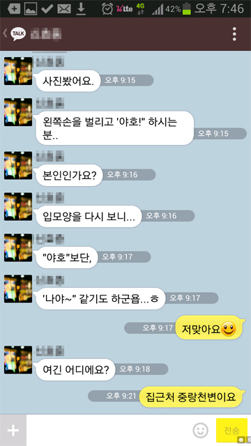 아무튼 남성분은 '감성적이고 자상하고 센스있는' 캐릭터를 계속 강조하고 싶어합니다. 여자의 프로필 사진에 대해서 나름대로 논평을 하는데요. 여기서 여자는 '대체 이 남자는 뭥믜???' 라고 생각했다 합니다.