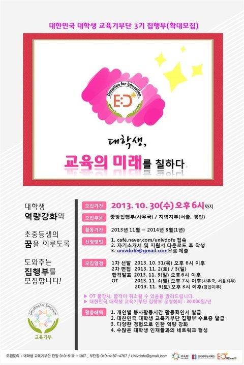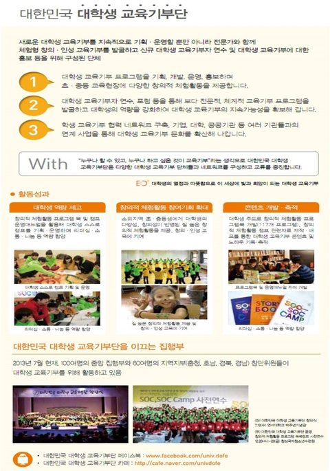 대한민국 대학생 교육기부단 공식페이스북 facebook.com/univdofe