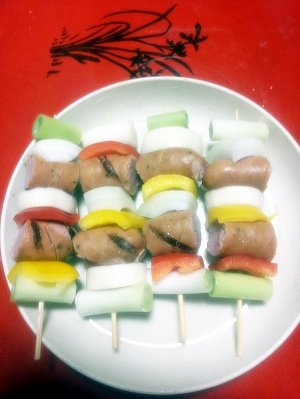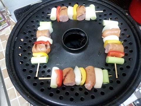꼬치용 막대에 차례대로 꽂아서 준비해주세요. 전 저런 식으로 꽂아 줬어요.