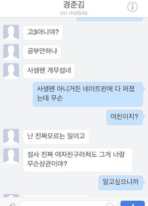 이건 페북 전체공개였을때 친척한테 보낸 메세지라는데 ㅋㅋ 갑자기 사생이냐고 버럭헐...