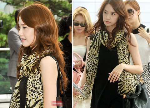 블랙 패션에 호피무늬 스카프로 멋낸 공항패션 ㅋㅋ