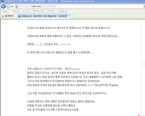 꺼져 죽어버려 너깟게! 라는 식의 악플을 단 사람은 전혀 없었음 ㅋ