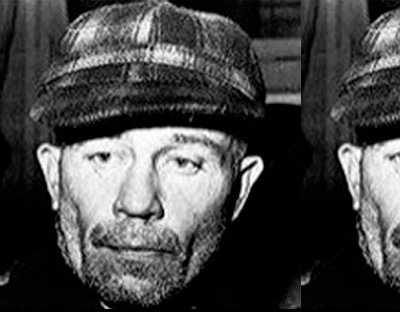 에드워드 게인 그는 위에서 설명하듯이 1906년 08월 27일 위스컨신 주 플래인필드에서 몇 마일 떨어진 외곽에 위치한 농가의 가난한 농부 조지와 오거스타 사이에서 둘째아들로 태어났어.