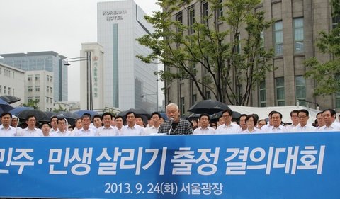 지난달 박근혜 대통령은 여야 대표들과 만난 3자회담 자리에서 "정쟁을 그만두고 민생을 돌보자"고 제안했다. 어제는 총리가 나타나 그것과 거의 똑같은 내용의 담화를 읽었다. 대통령과 총리가 '정쟁'이라 표현한 것은 물론 국정원사건을 둘러싼 여야의 공방이다. 청와대와 함께 국정원사건의 수세에 몰려있는 새누리당도 틈만 나면 야당에게 "이제는 민생을 돌보자"고 제안한다. 정치적으로 궁지에 몰려있는 상황에서 '민생'이란 말만큼 좋은 환기제는 없다. 물론 그 '환기'란 국민들을 상대로 한 것이다. '민생'을 오용하는 것은 야당도 마찬가지다. 민주당은 9월 말부터 '민주, 민생 살리기 투어'라는 괴상한 이름의 공식행사를 갖고 있다. "민주와 민생 모두 중요하다"는 말은 김한길 대표가 입버릇처럼 하는 말이다. 그 둘이 같다는 뜻이 아니라, 열심히 노력해서 다른 두 가지를 모두 잡겠다는 뜻이다. 장외투쟁의 성과없음을 '민생'이라는 환기제로 가리려 한다는 점에서도 새누리당의 태도와 크게 다르지 않다. 이렇게 우리는 정치와 민생이 다르지 않다는 말을, 적어도 그것들이 매우 밀접하다는 당연한 말을 정치권에서 들을 수 없다.